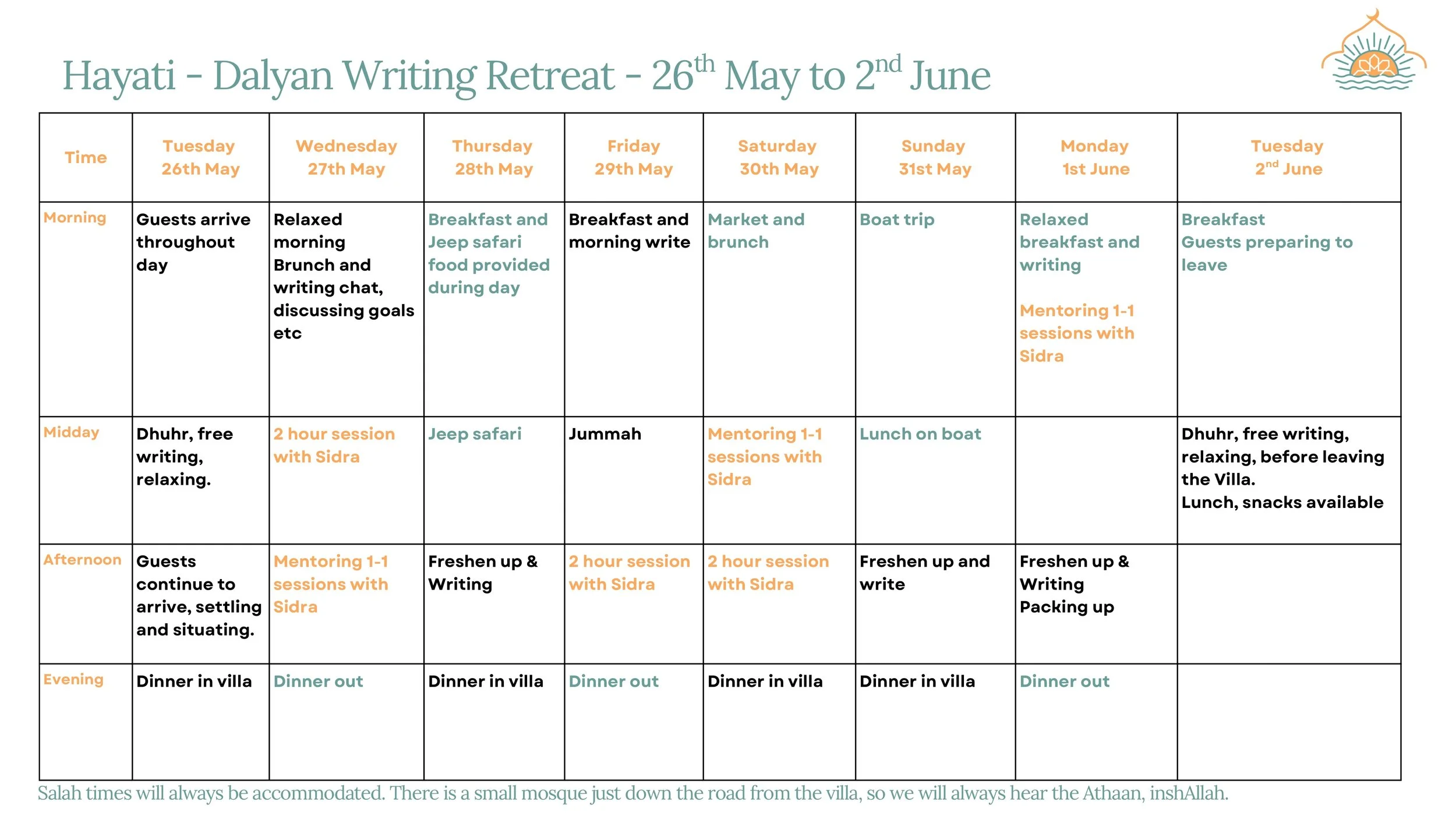 The Dalyan Package: No matter what stage of writing you are at - complete novice or published author, you will find this retreat inspiring and beneficial, inshAllah.